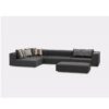 5 seater sectional sofa with an ottoman and three throw pillows.